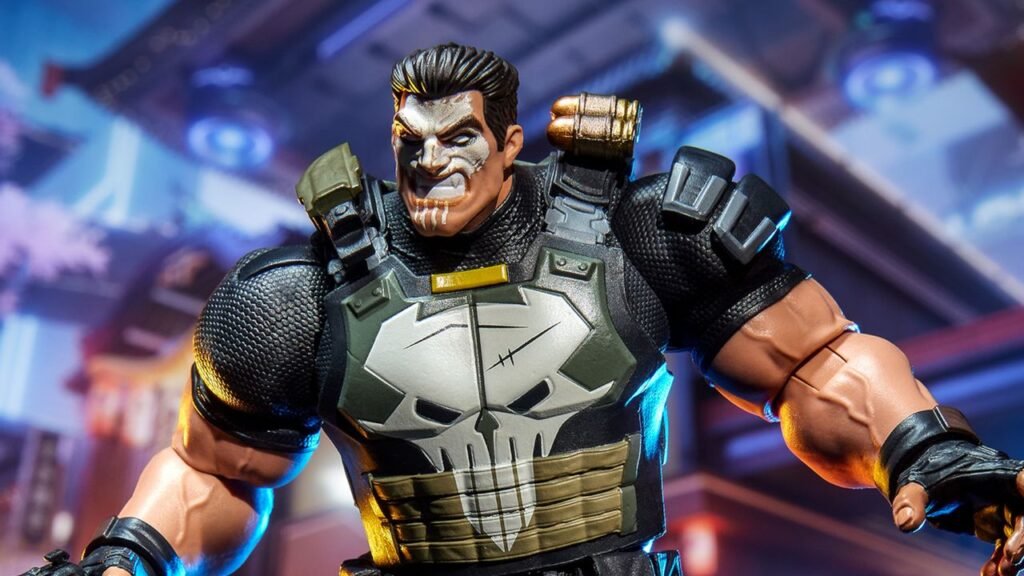 The game’s oh-so chunky version of Frank Castle comes with a couple of weapons, gun flare effects, alternate hands, and an angry alternate head that looks like I feel when I lose a match of Marvel Rivals.