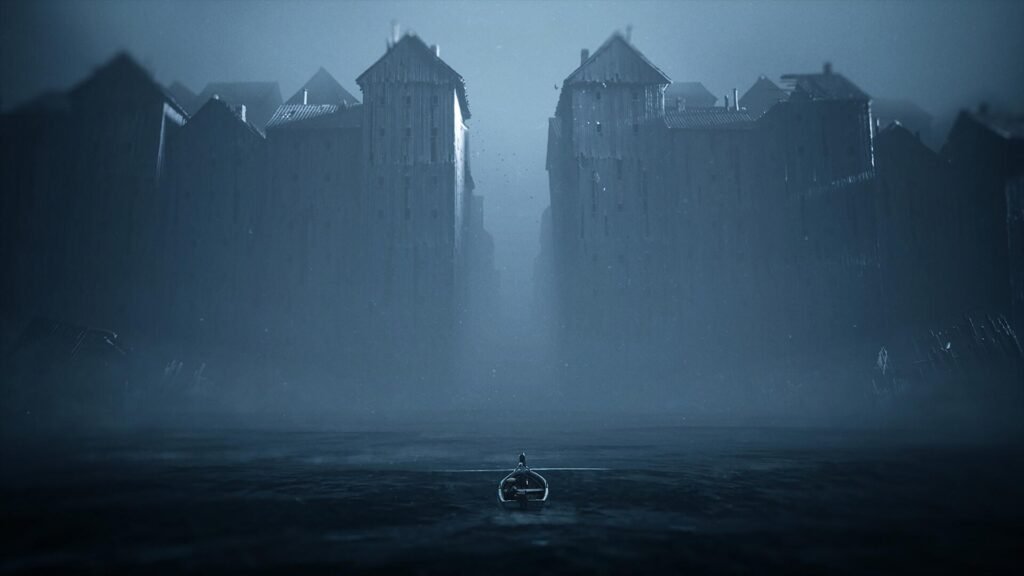 You’ll likely know how this goes: navigating through this darkened world requires a blend of 3D platforming, stealth, and puzzle-solving to progress. The biggest difference is how the world is opened up. Chapters vacillate between a more level- or hub-oriented design, where certain areas branch out and loop around, with small detours sprinkled in between; just enough open space without committing to an open world. It presents you with a level of trust to explore at your own pace whilst underlining the golden path. From a more motivated camera to a discreet UI template, Tarsier’s understanding of film language ensures this subtler approach is even possible.