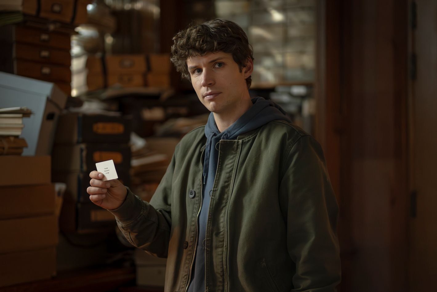 Let’s start with the first one of those attempted hooks: our protagonist, Guy Anatole, and his search for the truth behind his early childhood. After a cold open — a chase scene in London in which a cool girl hacker in the most cropped jacket I’ve ever seen in my life downloads a file and then flees across an industrial zone, only to throw herself in front of a train when a vampire-looking guy uses a clicker to set a pair of gurgly monsters on her — we find ourselves in a cold corporate office, where we get our first look at Guy, whom I can only describer as “like if Evan Hansen made a wish to be a real boy.” (This is less the fault of Nicholas Denton, Guy’s actor, and more the fault of his unfortunate haircut. Many things, however, are the fault of Nicholas Denton. We’ll get to that.)
